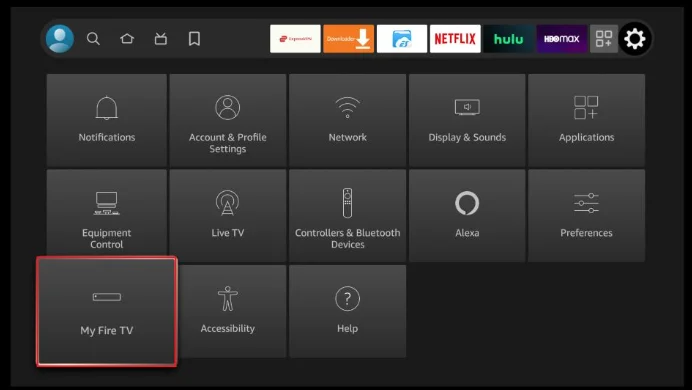 5. Dans les Paramètres, accédez à l'option Ma Fire TV et ouvrez-la.