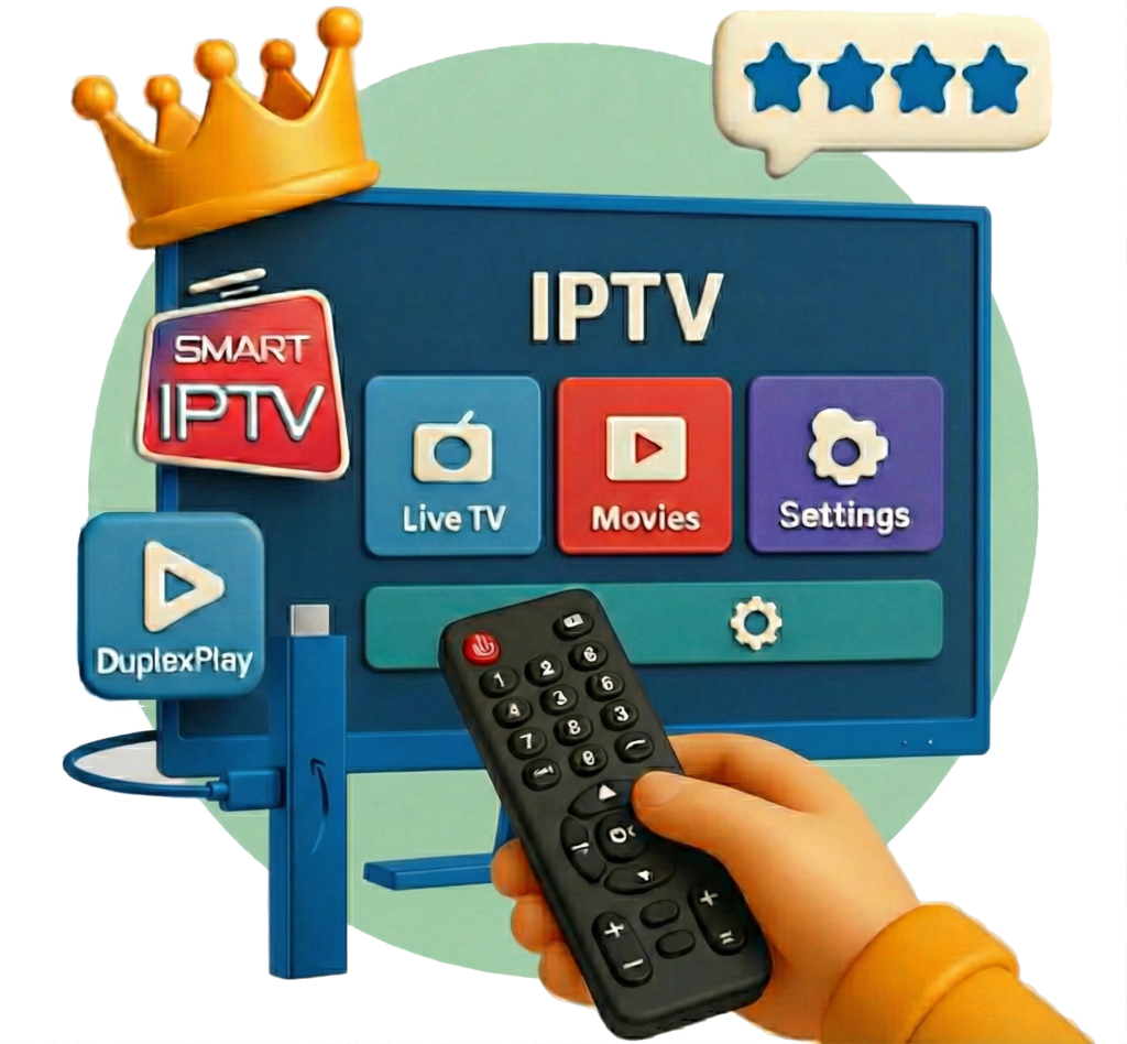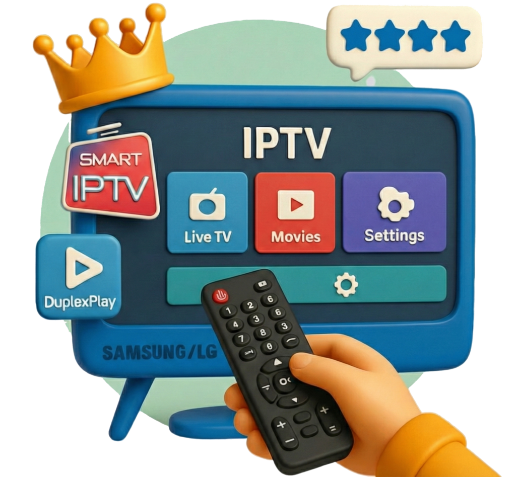 Regardez IPTV The Fox sur votre Smart TV Samsung ou LG sans avoir besoin d’un boîtier séparé. Il vous suffit d’installer Smart IPTV ou Duplex Play et de commencer à diffuser plus de 18 000 chaînes en direct et plus de 130 000 titres VOD en HD et 4K. Configuration rapide, expérience fluide.